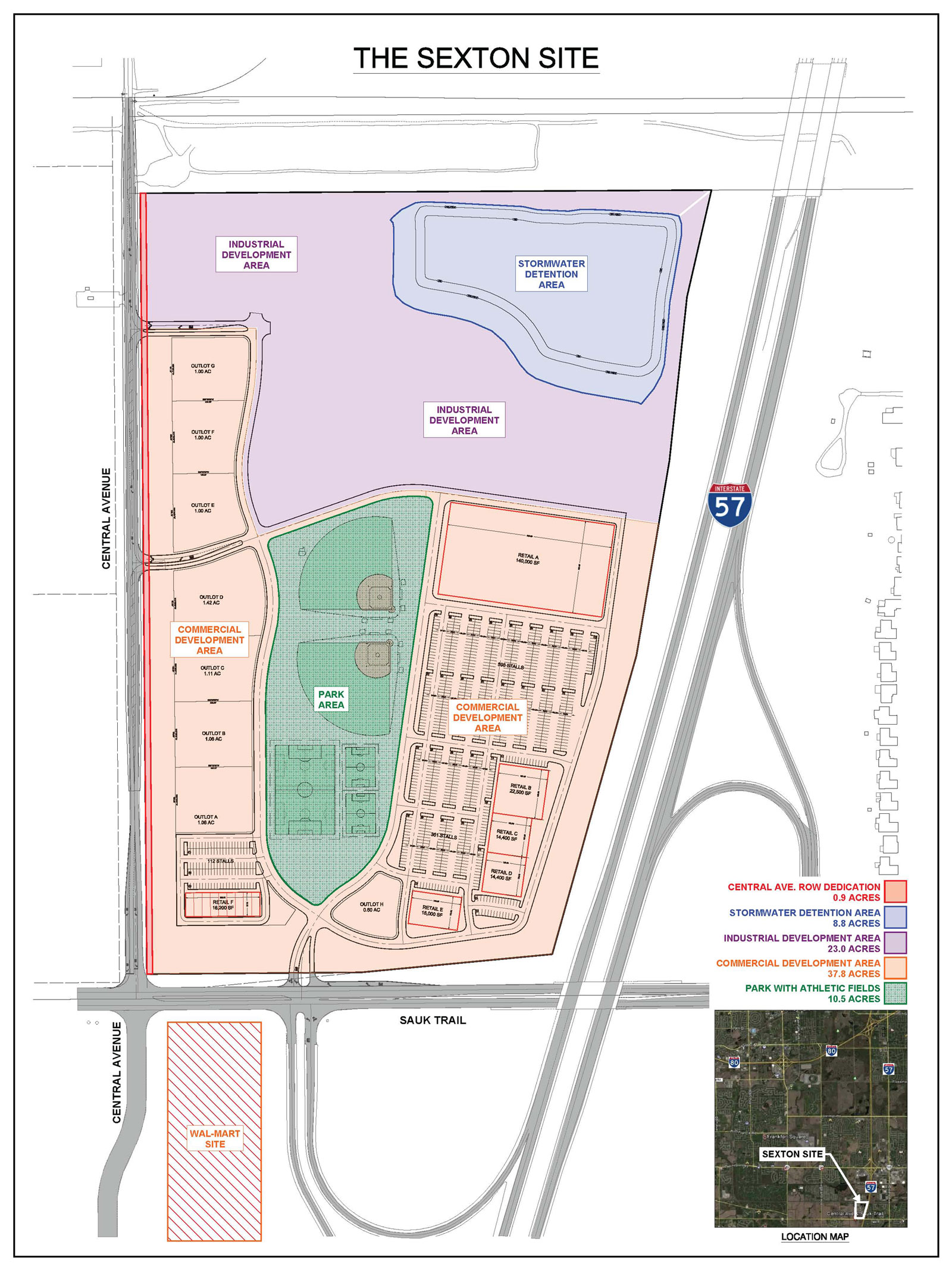 The ultimate site development will also include offsite roadway improvements to Central Avenue including appropriate turn lanes, two full access driveways and utility extensions. All permitting for roadway improvements to be coordinated with the Cook County Highway Department.